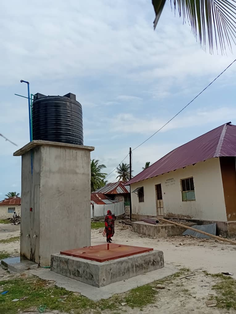 Deux puits à citernes construits dans les villages de Bwejuu et Mtende.