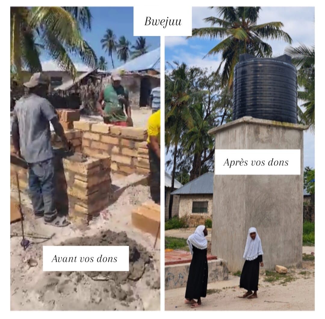 Deux puits à citernes construits dans les villages de Bwejuu et Mtende.