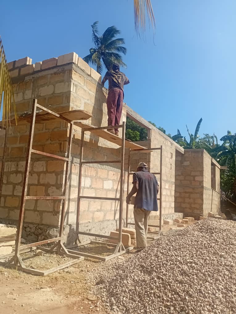 Assainissement des locaux, réfection et peinture des murs intérieurs et extérieurs, remplacement complet de la toiture, installation de nouvelles portes et fenêtres.